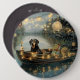 Set sail into the magic of the holiday season with this beautifully detailed illustration, showcasing a proud dog sitting in a festively decorated boat, gliding across a serene Christmas lake. The twinkling lights from nearby pine trees reflect off the water, casting a warm, festive glow that enhances the cosy ambiance. Ornaments dangle from the boat's sides, while glowing lanterns light the way, creating a scene that captures the true essence of Christmas warmth and joy. This nostalgic artwork brings a touch of holiday magic to any space, perfect for those who cherish the spirit of the season.