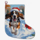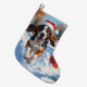 Bluetick Coonhound Running in Snow with Christmas Large Christmas Stocking
