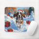 Bluetick Coonhound Running in Snow with Christmas Mouse Pad