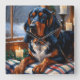 A heartwarming holiday scene featuring a dog sitting peacefully beside a window, surrounded by glowing Christmas lights. This cosy and festive design captures the spirit of the season, perfect for adding warmth and charm to any space. Ideal for dog lovers and holiday decor enthusiasts.