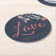 Bluish Chalkboard Floral Love Wedding Round Paper Coaster
