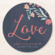 Impress your guests with this pretty personalised elegant Wedding round coaster featuring beautiful floral against a bluish chalkboard background, with the word "Love" in modern script font. It will also make great favour gifts for your party. Check out the matching Wedding items in my store here http://www.zazzle.com/collections/bluish_chalkboard_floral_bridal_and_wedding-119872540777216768?rf=238364477188679314