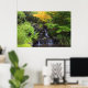 Blurred Rock Waterfall, Maple Green & Orange Trees Poster