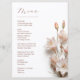 This minimalist wedding menu card features blush 3D textured boho wildflowers and an elegant handwritten script on a white background.