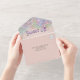 Pretty blush coloured Sweet 16 birthday party invitation done in using a tri fold all in one invitation, with graphics of colourful glittery confetti, at the top. Personalise the custom text for your favourite girl's special day.