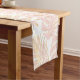 Blush pink and gold tropical leaves table runner. This design includes leaves of Split Leaf Philodendron (Monstera deliciosa) or Swiss Cheese Plant and palm leaves in pink with gold outline.