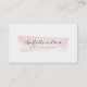 Elegant blush and grey business cards feature your name or business name on a blush pink watercolor swash background, with your full contact details on the back in white on grey.