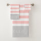 Blush and Grey Stripes Monogram | Editable Colours Bath Towel Set