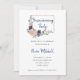 These trendy and stylish housewarming party invitations feature hand drawn flowers in navy blue and blush pink watercolors. Plenty of botanical green leaves and foliage decorate the bouquets. There is also a faux rose gold look rectangular geometric frame and modern handwritten script.