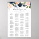 This blush and navy flowers alphabetical seating chart poster is perfect for a floral wedding. This sign can be used to organise your guests alphabetically or by table number. The classic and elegant design features modern watercolor navy blue and blush pink flowers. This wedding poster includes enough room for up to about 120 guests. Make room for more (or less) guests by clicking the "customise" button and decrease or increase the size of the font. In addition to the placement of each guest, personalise this sign with the names of the bride and groom and the wedding date.
