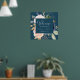 This blush and navy flowers blue welcome wedding poster is perfect for a floral wedding. The classic and elegant design features modern watercolor navy blue and blush pink flowers on a teal blue background. Customise the poster with the name of the bride and groom, and the date of the wedding.