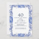 Blush and Navy Flowers Blue Wreath 40th Birthday Invitation