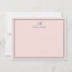 Our simple and refined monogrammed cards are a beautiful choice for your personal stationery, and make a unique alternative to folded cards. Chic blush pink flat cards feature a navy blue double-bordered design with your single initial monogram in elegant script lettering, and your name below in classic block typography. Plain white envelopes are included.
