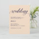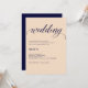 These stylish wedding invitations feature a blush pink background. The word "wedding" appears at the top in modern navy blue calligraphy. All of your wedding information appears in simple modern text. An elegant, trendy look for your wedding.