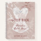 Elegant glam bridal shower guest book in modern blush and burgundy featuring a white lace corset over a marble patterned rose gold and silver glitter background. ++++ Personalise it with your custom text and details!
