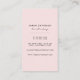 Modern and elegant business cards in a unique vertical format feature a top and bottom border of crisscrossing geometric lines in crisp black with a colorblock underlayer of sheer blush pink. Add your contact information to the reverse side in black lettering on a pale blush background.