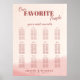 Create a warm and welcoming atmosphere for your guests with these stunning Minimalist Blush & Bloom Bold Script Wedding Seating Charts. Featuring a delicate blush and rose gold watercolor wash with subtle texture, these seating charts add a touch of love and romance to your reception. At the top, "Our Favourite People" is elegantly displayed in bold floral script, followed by "Your Seat Awaits" in the same style. Below, 12 table numbers are clearly listed with ample space for guest names, making it easy for your guests to find their assigned tables. The couple's names in bold script, along with the wedding date, city, and state, are elegantly displayed at the bottom. Customise all the text easily over this template, ensuring a smooth and enjoyable seating experience for your guests.
