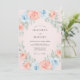 This design features a soft watercolor palette of blush pink, peach, and pale blue. Delicate roses and lush green leaves create a whimsical atmosphere perfect for a romantic spring or summer event. The ethereal aesthetic captures the essence of a blossoming meadow in the light of dawn.