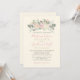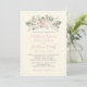 This elegant wedding invitation features a soft blush script with a romantic botanical floral crest in muted pinks and sage greenery. The design is set on a clean warm white background for a classic garden look. Perfect for spring and summer celebrations, from outdoor ceremonies to timeless church weddings. Personalise with your names, date, and details.