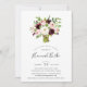 Elegant floral bridal shower invitations feature a bouquet of blush pink and burgundy watercolor flowers with lush green botanical foliage and leaves. Personalise with your bridal shower details beneath in a chic mix of block, serif and calligraphy typefaces.