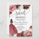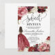 Blush burgundy maroon flowers princess dress sweet sixteen invitation,