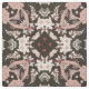 fabric printed with delicate vintage art deco posies and flowers in blush, peach, and coral on black.