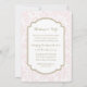 Elegant wedding vow renewal invitations in chic light pastel blush pink and white vintage floral damask pattern with rustic style tan beige sand brown frame. Fully customisable text to include your vow renewal ceremony details.