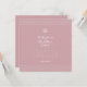 A classic yet modern square baptism invitation in dusty pink blush featuring subtle top and bottom stripes, a hand-painted shell with a cross, and a soft script font for an elegant, meaningful look.