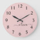 Blush Dusty Pink Modern Script Girly Monogram Name Large Clock
