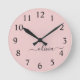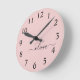 Blush Dusty Pink Modern Script Girly Monogram Name Round Clock
