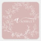 Blush Dusty Pink Modern Script Girly Monogram Name Square Sticker