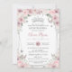 Blush Dusty Pink White Floral Silver Quinceañera Invitation