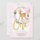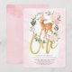 Blush Floral Baby Deer Fawn Girl 1st Birthday Invitation