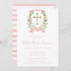This adorable girl Baptism invitation would be perfect for inviting family and friends to your sweet baby's christening. It has a peachy pink monogrammed watercolor crest with a gold cross surrounded by greenery and white roses tinged with peach, your bundle of joy's first name, and a coordinating blush watercolor striped back. It's unique and precious just like your baby.