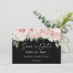 This blush floral black flat save the date card design features beautiful chic neutral backgrounds of black or white with simple modern typography and elegant calligraphy to set a sophisticated tone for any style of event. Each product is embellished with gorgeous blush pink roses and peach and ivory hydrangeas arranged with lush eucalyptus and greenery leaf details, along with timeless geometric gold frames for a luxurious look. Mix and match this coordinating collection for an effortless personalised dream wedding aesthetic for a wide range of casual to formal styles. For more coordinating designs, this design is also available in pastel pink and navy blue. As with all of our design, if you have any questions or special requests please just ask.