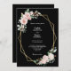 This blush floral black simple wedding invitation design features beautiful chic neutral backgrounds of black or white with simple modern typography and elegant calligraphy to set a sophisticated tone for any style of event. Each product is embellished with gorgeous blush pink roses and peach and ivory hydrangeas arranged with lush eucalyptus and greenery leaf details, along with timeless geometric gold frames for a luxurious look. Mix and match this coordinating collection for an effortless personalised dream wedding aesthetic for a wide range of casual to formal styles. For more coordinating designs, this design is also available in pastel pink and navy blue. As with all of our design, if you have any questions or special requests please just ask.