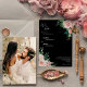 This blush floral black we do photo wedding invitation design features beautiful chic neutral backgrounds of black or white with simple modern typography and elegant calligraphy to set a sophisticated tone for any style of event. Each product is embellished with gorgeous blush pink roses and peach and ivory hydrangeas arranged with lush eucalyptus and greenery leaf details, along with timeless geometric gold frames for a luxurious look. Mix and match this coordinating collection for an effortless personalised dream wedding aesthetic for a wide range of casual to formal styles. For more coordinating designs, this design is also available in pastel pink and navy blue. As with all of our design, if you have any questions or special requests please just ask.
