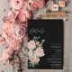 This blush floral black wedding details enclosure card design features beautiful chic neutral backgrounds of black or white with simple modern typography and elegant calligraphy to set a sophisticated tone for any style of event. Each product is embellished with gorgeous blush pink roses and peach and ivory hydrangeas arranged with lush eucalyptus and greenery leaf details, along with timeless geometric gold frames for a luxurious look. Mix and match this coordinating collection for an effortless personalised dream wedding aesthetic for a wide range of casual to formal styles. For more coordinating designs, this design is also available in pastel pink and navy blue. As with all of our design, if you have any questions or special requests please just ask.