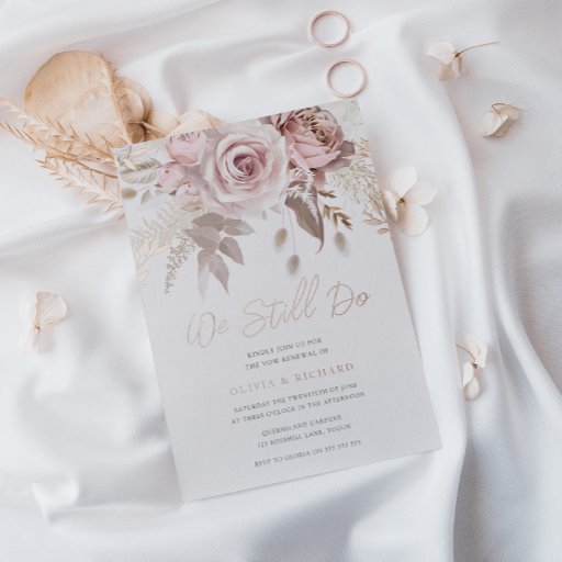 Blush Floral Dusty Roses Wedding Anniversary Invitation