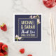 Blush Floral Gold Frame Navy Blue Custom Wedding Napkin