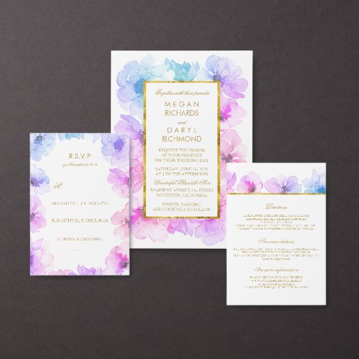 Watercolor Flowers Gold Frame Wedding CollectionDesigned by Jinaiji Custom Invitations