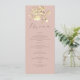 Elevate your reception table with this romantic blush pink wedding menu card, beautifully adorned with gold wildflowers and elegant script. The vertical layout offers a clean, refined format to display your course selections—perfect for rustic, garden, or vintage-themed weddings.