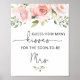 Blush floral how many kisses bridal shower game sign.
