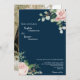 This blush floral navy photo wedding invitation design features beautiful chic classic backgrounds of pastel pink and navy blue with simple modern typography and elegant calligraphy to set a sophisticated tone for any style of event. Each product is embellished with gorgeous blush pink roses and peach and ivory hydrangeas arranged with lush eucalyptus and greenery leaf details, along with timeless geometric gold frames for a luxurious look. Mix and match this coordinating collection for an effortless personalised dream wedding aesthetic for a wide range of casual to formal styles. For more coordinating designs, this design is also available in white and black. As with all of our design, if you have any questions or special requests please just ask.