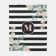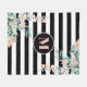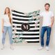 Blush Floral on Black and White Stripe Monogrammed Fleece Blanket