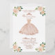 Elegant blush pink gown, floral 15th birthday party invitations.