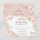 Blush Floral Rose Gold Butterfly Quinceañera Reply RSVP Card