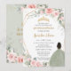 Blush Floral Sage Green Brown Princess Quinceañera Invitation