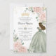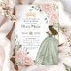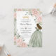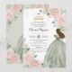 Blush Floral Sage Green Princess Gown Quinceañera Invitation