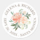 Spring floral bouquet in watercolor peaches and pinks with touches of sage green, editable text around the circumference.